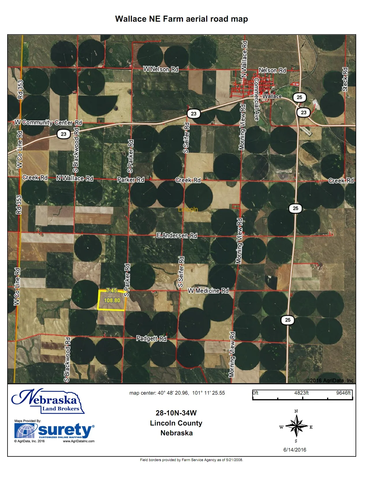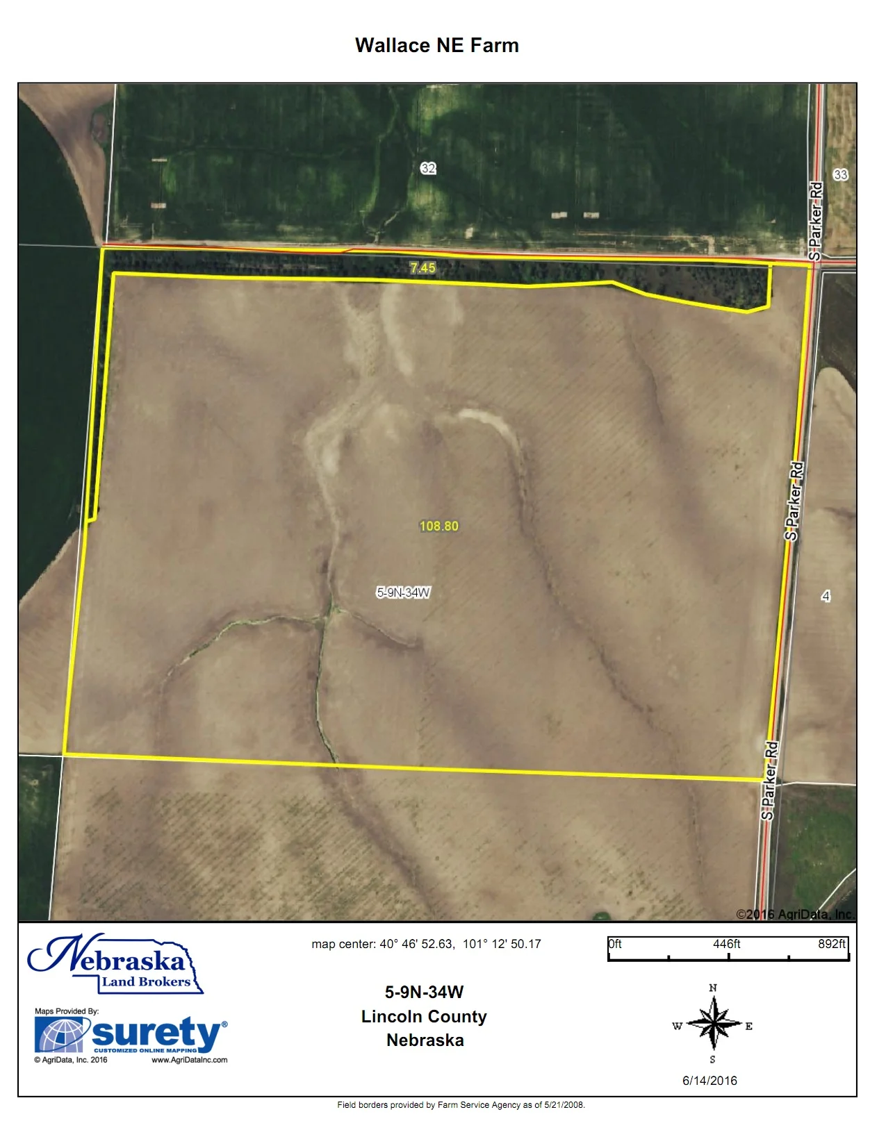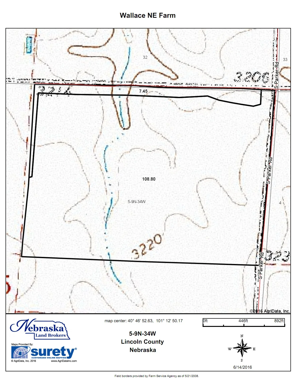 This is a non-irrigated farm located on a good county gravel road 3 miles from Highway 23 southwest of Wallace, NE. There are 108.8 tillable acres. The property includes 65% Class II soils and lies nearly level.