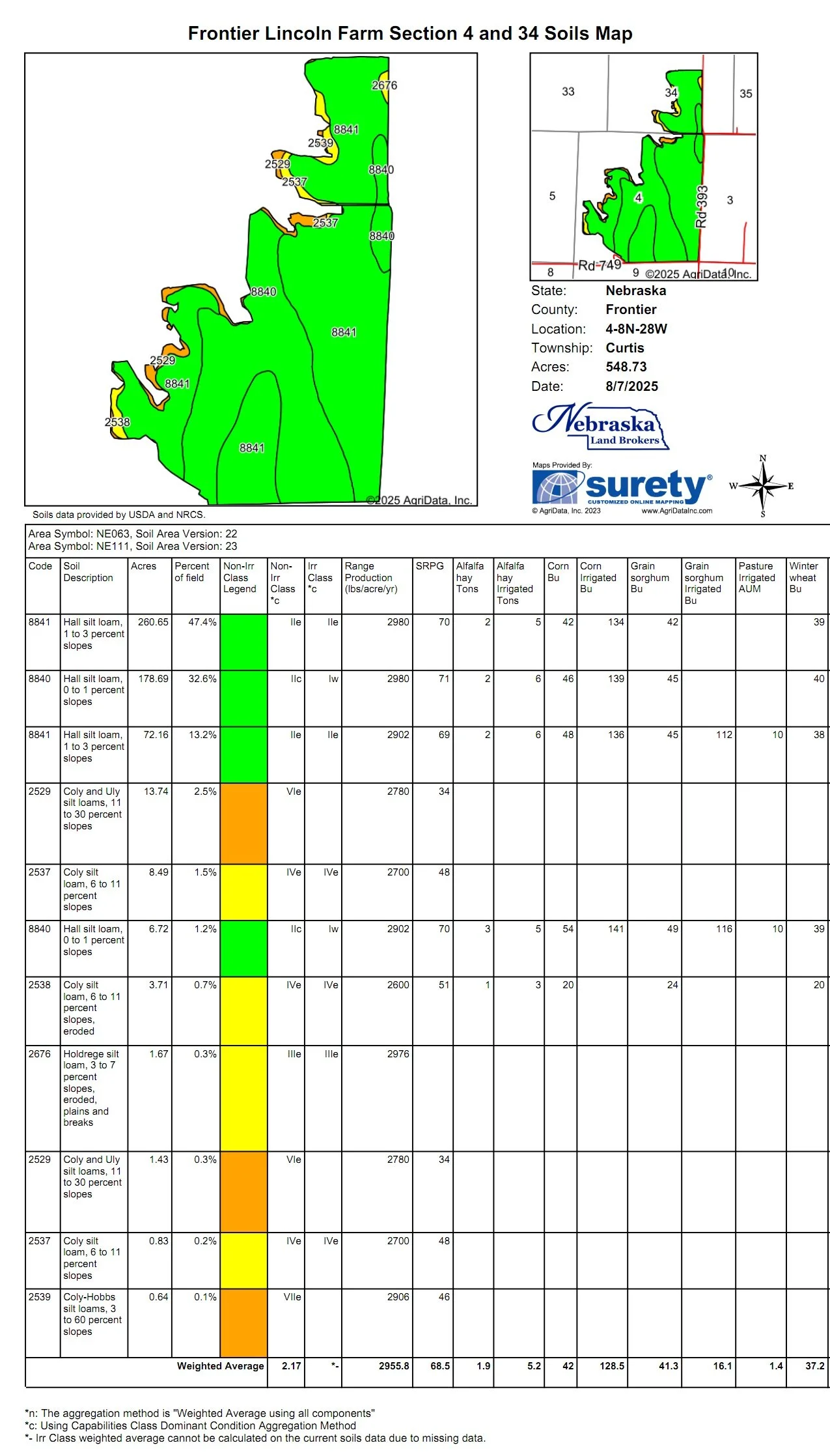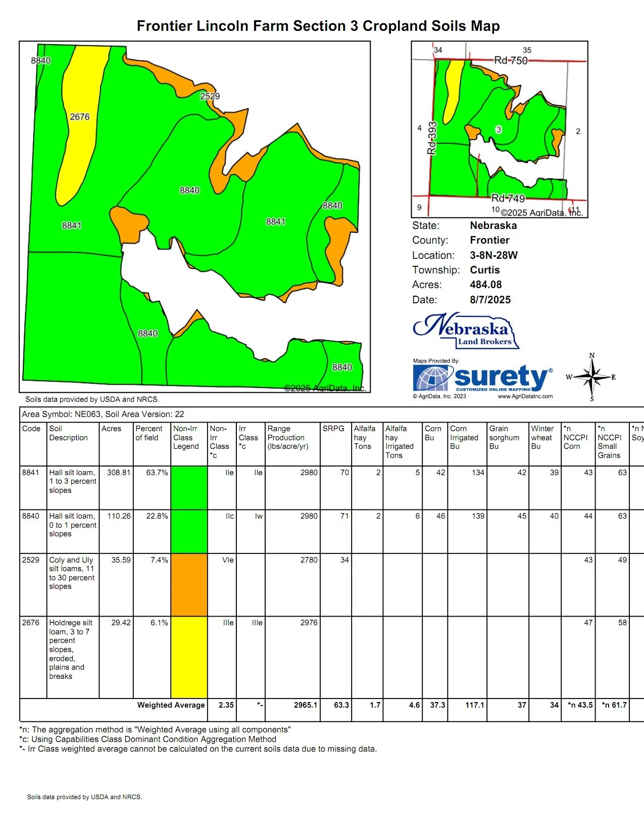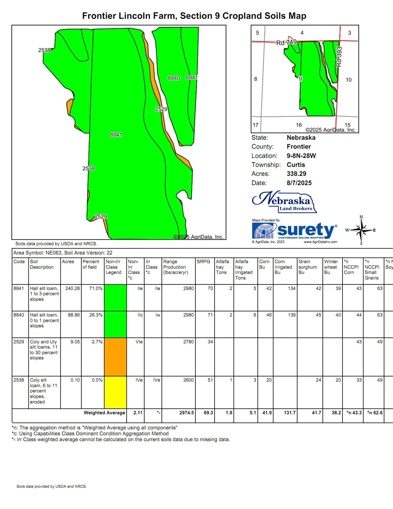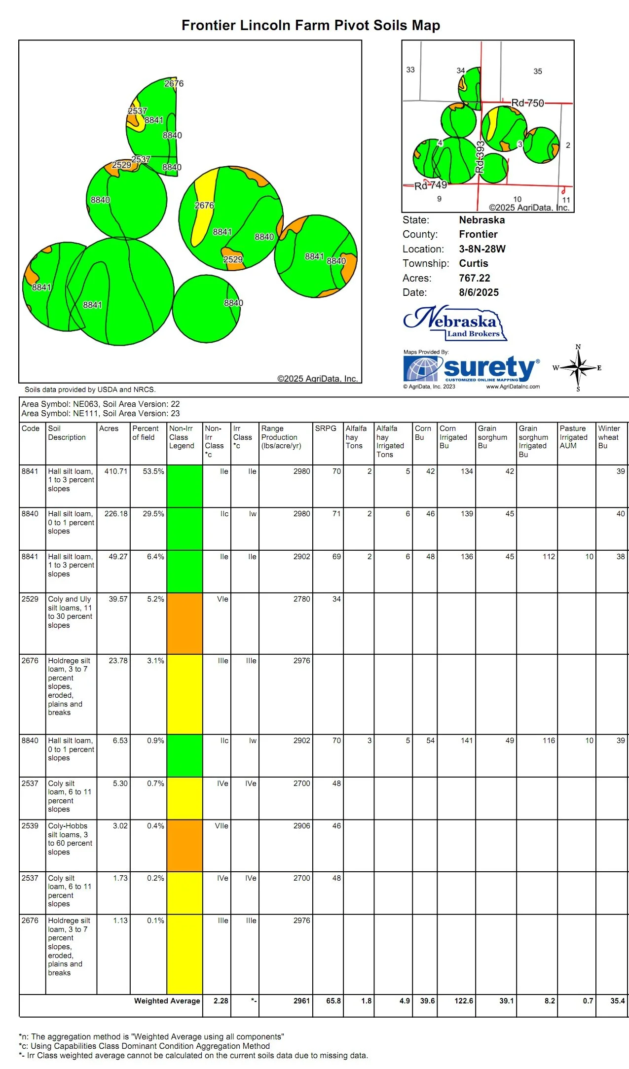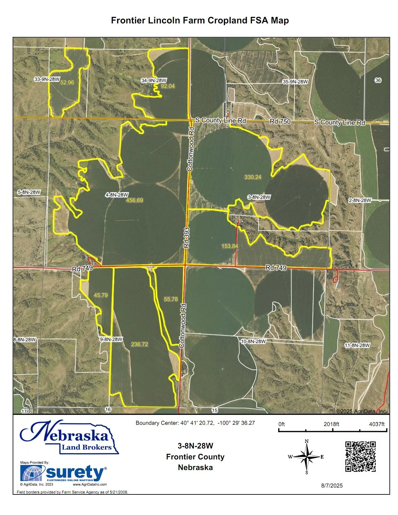 With a total of 2,077.89 taxed acres in Frontier and Lincoln County, the Frontier Lincoln Farm stands out as a premier, contiguous property in a region recognized for its top-tier cropland.