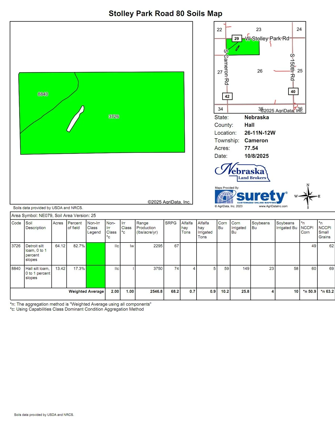 Looking for a nice cropland investment? This farm includes 77.14 Central Platte NRD certified irrigated acres that were once applied as gravity irrigation. The well has not been used for many years as the tenant utilizes his own well and pivot to irrigate.