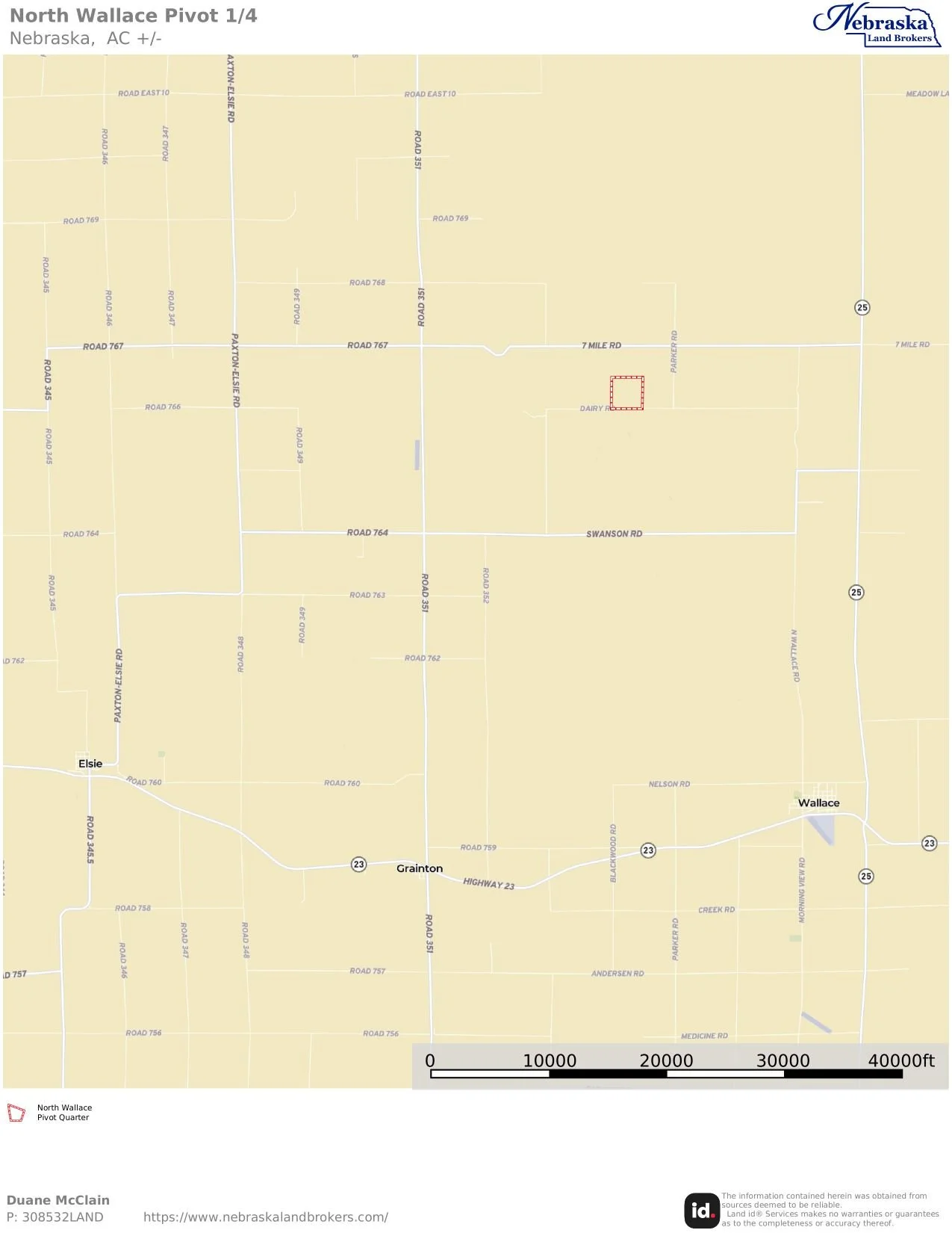 Located approximately 7 miles north of Wallace, NE on Dairy Road is this very nice pivot irrigated farm which is in the Twin Platte NRD. Take a look at this investment opportunity to own a productive pivot irrigated farm.
