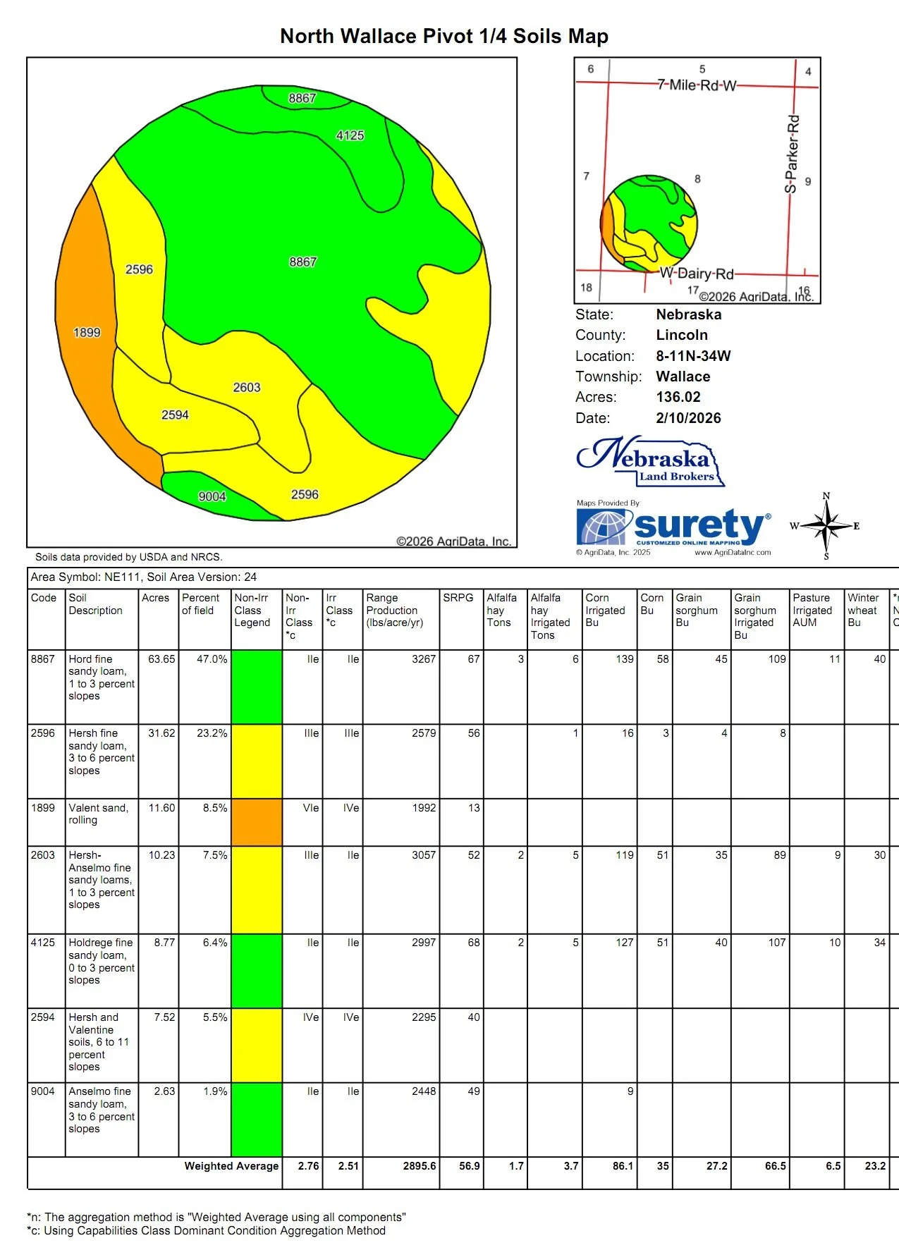 LOCATION: The pivot irrigated farm is located in southwestern Lincoln County on Dairy Road about 7 miles north of Wallace, NE.