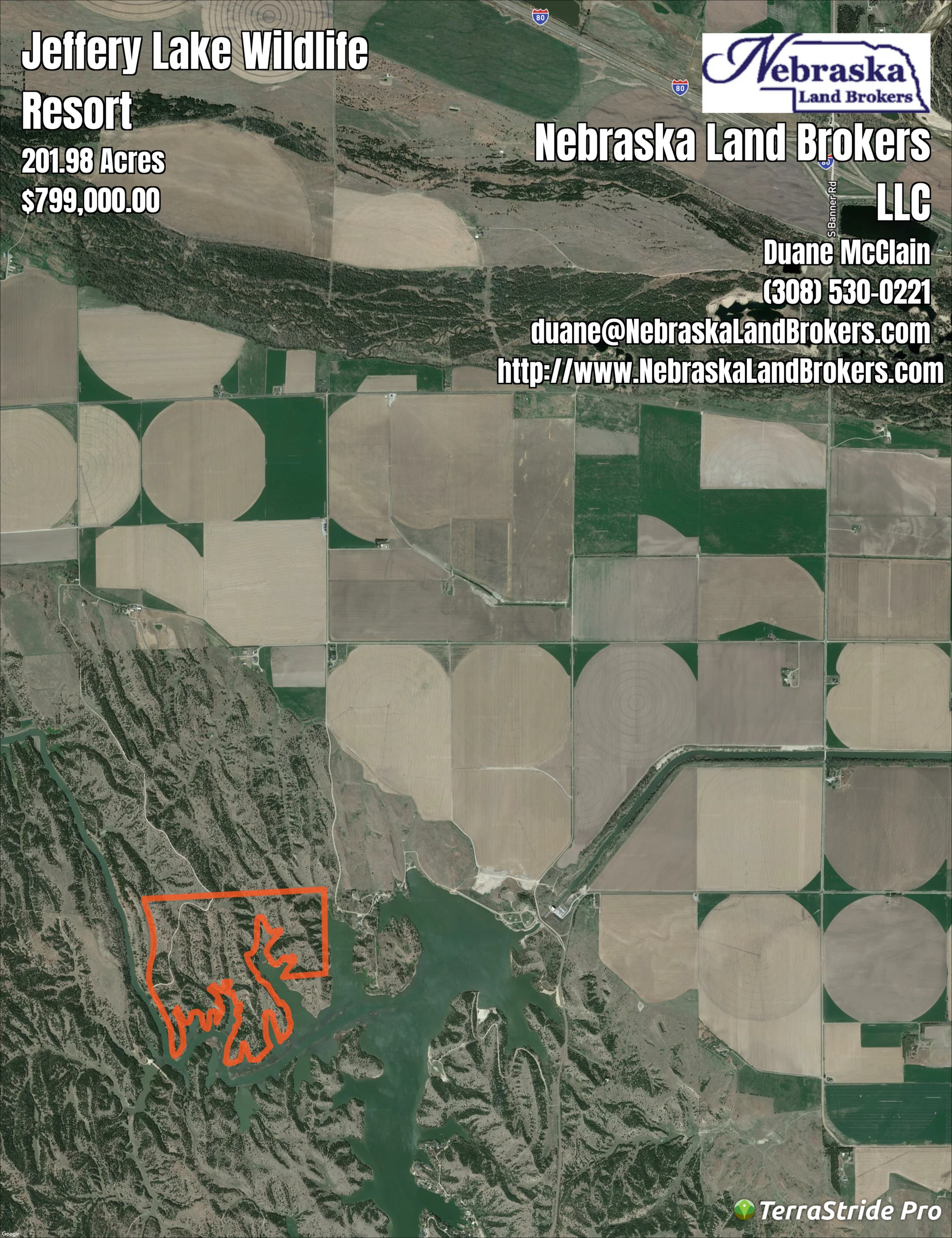 The property is 5 miles from the Brady, NE I-80 Exit 199 and about 30 minutes from North Platte, NE and about 70 minutes from Kearney, NE. Jeffery Lake is home to many full time and part time residences.